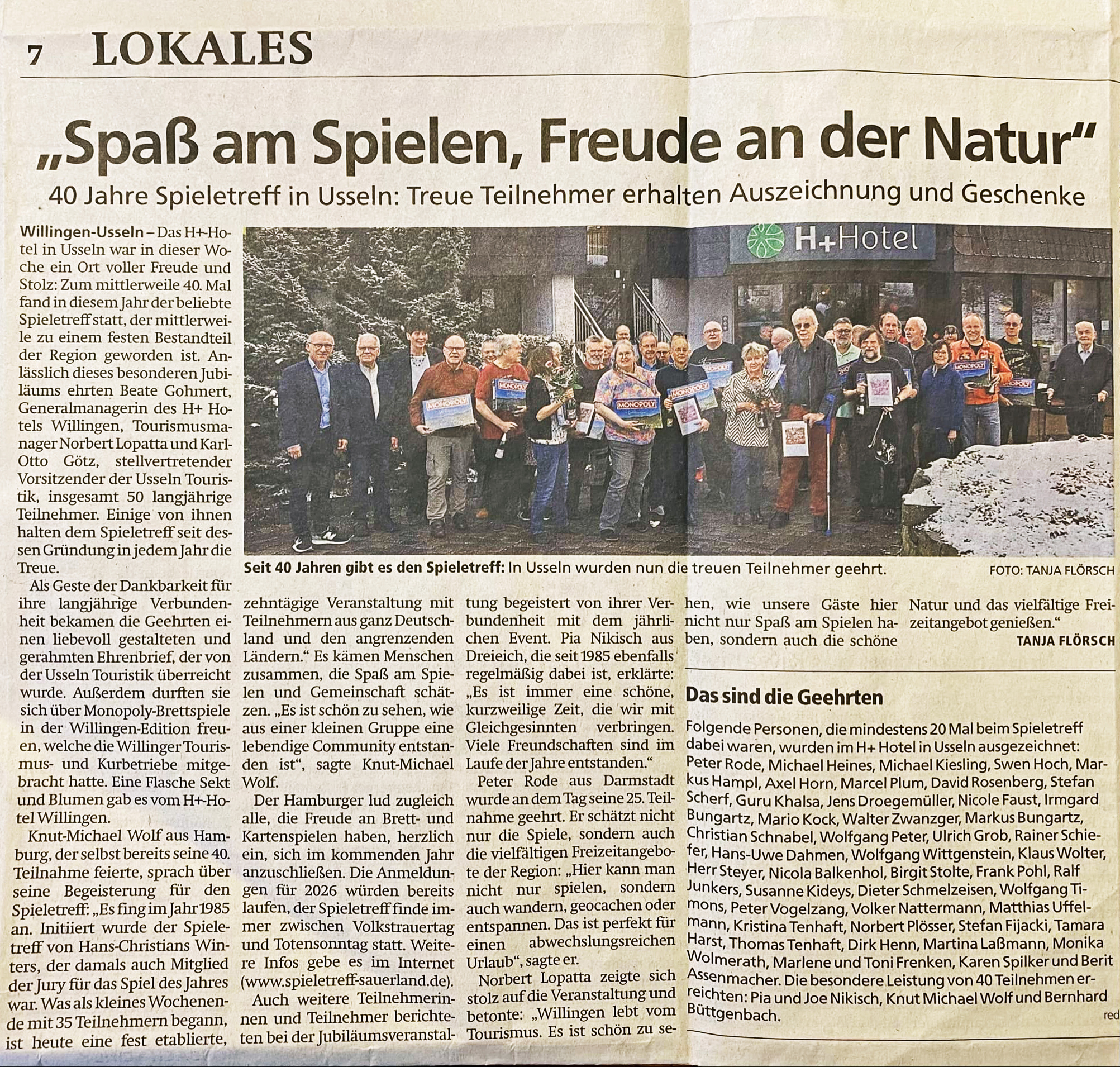Am 21.11.2025 berichtete die WLZ ausführlich über den 40. Spieletreff und versammelte die Gäste ein weiteres Mal auf einem Gruppenfoto.
